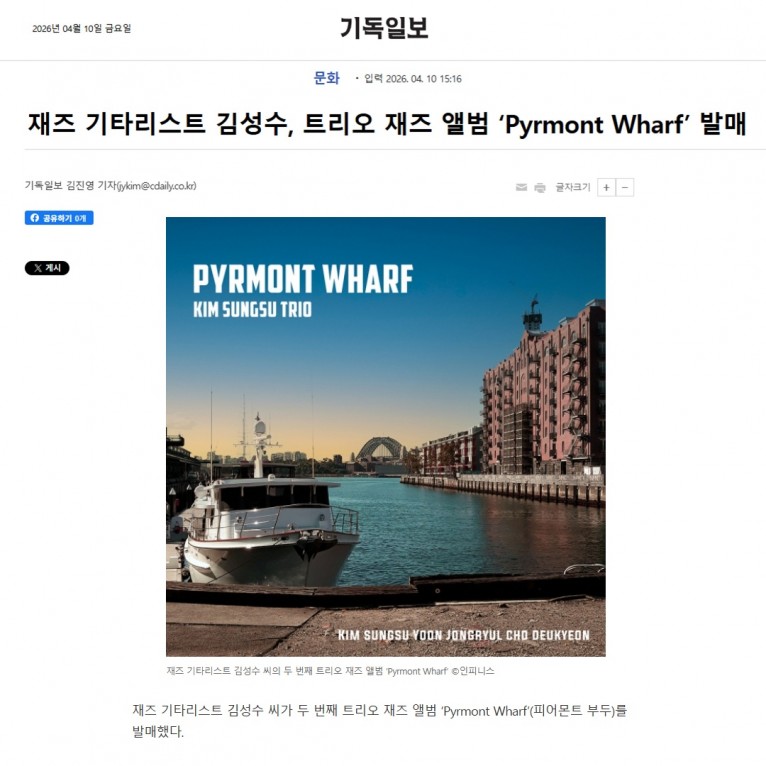 [기사] 재즈 기타리스트 김성수, 트리오 재즈 앨범 ‘Pyrmont Wharf’ 발매(기독일보)