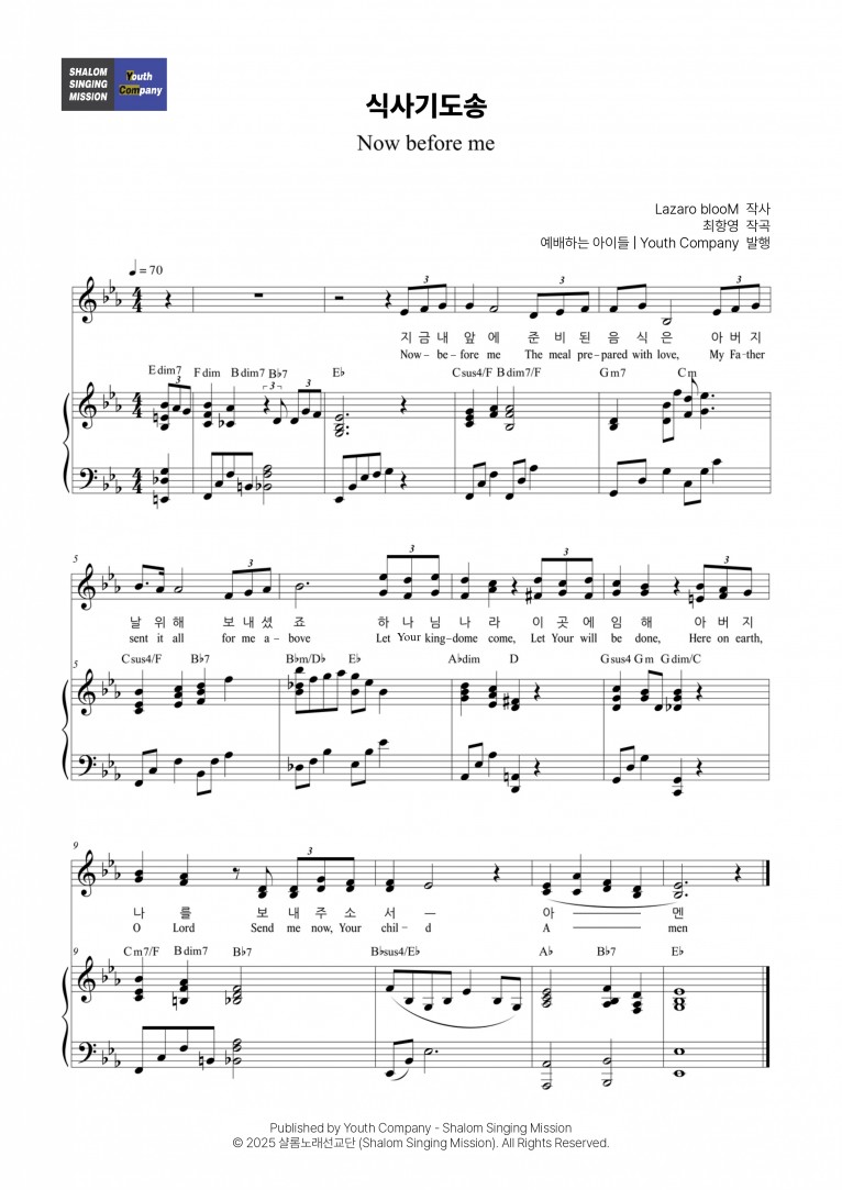 [악보] 식사기도송 (Now before me) - 예배하는 아이들 (예배하는 아이들 Vol. 1 - 예배)